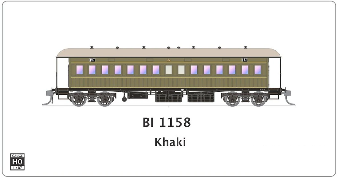 SDS Model HO NSWGR End Platform Car BI 1158 Khaki Single Carriage