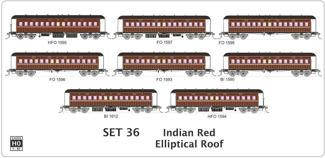 SDS Model HO NSWGR End Platform Car SET 36 Indian Red Eliptical Roof 8 Carriage Pack