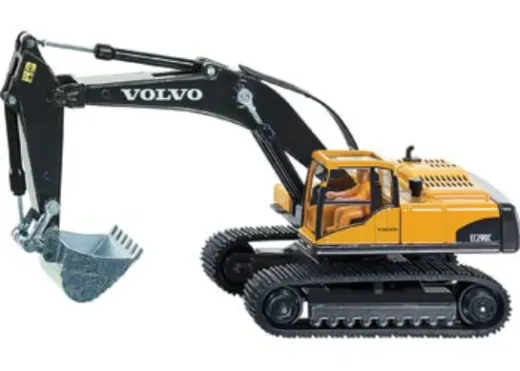This hydraulic digger from the Volvo brand is a standard device for small- to medium-sized construction sites. Mainly produced in die-cast metal, the 1:50 scale model is eye-catching and true to the vehicles original details. Runs on moving, rubberized tracks. The machine unit with cabin and digger arm rotates 360... Realistic work is easy using this model - the digger arm and shovel are designed to move with swivel-joint operation.
