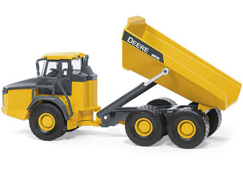 Siku is reknown for their realistic replica vehicles. Each die-cast model is made to exacting standards and exceptional quality, and feature realistic detailing. The brand John Deere can be found not only on fields worldwide, but also on construction sites. With its monumental, beefy 410E dumper, a John Deere brand construction vehicle with a scale of 1:50 is introduced into the SIKU range for the first time. Its detailed model depiction with a robust articulated joint is rounded-off with the massive and tilting metal trough. The massive wheels consist of rubberised material. Ages 3+ years
