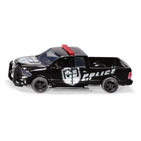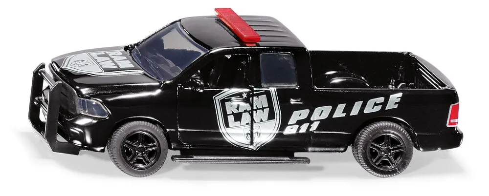 RAM! A global sign for massive and vigorous pick-ups with an 8-cylinder core. With a scale of 1:50, this pick-up demonstrates its true splendour and functionality. The bonnet, doors and boot lid can be opened. The latest innovation from SIKU is in the wheels. For the first time, they are removable, enabling a servicing or accident situation to be re-enacted in the children.s room. The police version is decorated with a typical round light and conspicuous printing.