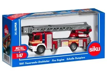 Siku fire truck with a turntable ladder made from zinc cast iron with plastic components in authentic design, with moveable functional parts for a wide range of exciting ways to playyears