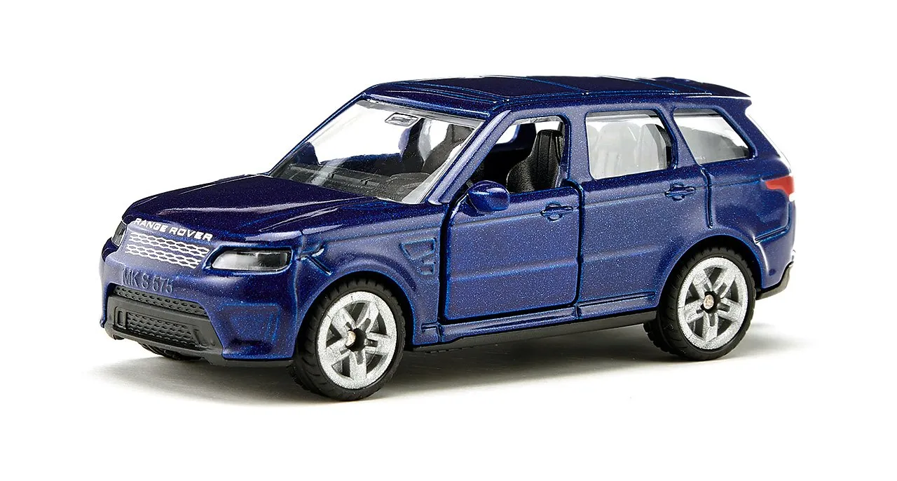 Siku Range Rover. Die-cast metal model with plastic parts. Features realistic detailing and robust construction suitable for play and display. Features include opening doors, rubber tyres, officially licensed by Range. Part of the Siku die-cast model range — made in Germany.