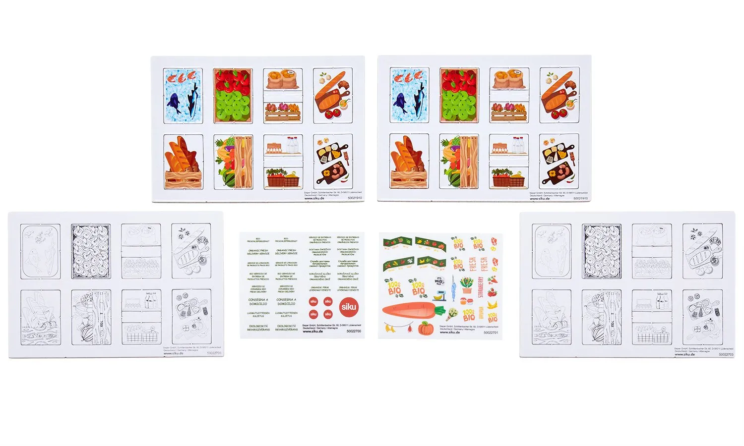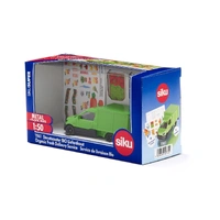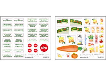 Fresh eggs and milk, crispy rustic bread, juicy fruits, and crisp vegetables straight from the fields - the BIO delivery service brings the food direct to your front door in the city. Not just the goods are environmentally friendly, the transport is too, because delivery by electric StreetScooter is completely emission-free. The driver's cab of this siku model is made of metal, and the superstructure is plastic. A flap at the rear can be opened for loading and unloading. With the sheet of stickers provided, the transporter can additionally be decorated with the lettering "Fresh organic deliveries" in various languages, and also with colourful images of fruit and vegetables. And because a delivery service requires suitable produce, there are also four cardboard sheets from which preprinted foodstuffs such as fruit, vegetables, eggs, and milk can be pressed out. However, on only two of the four sheets are the components printed in full colour. Only the outlines are printed on the other two sheets, and so the children themselves become creative and can colour the foodstuffs in whatever way they wish.