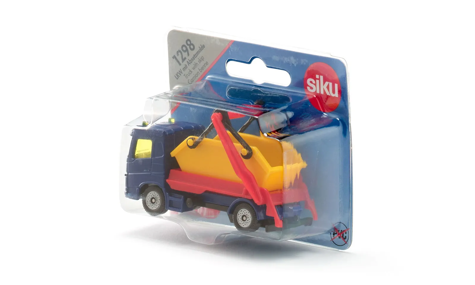 This practical Siku die-cast truck and skip model features movable parts that bring realistic refuse collection action to your collection. Built from die-cast metal with plastic components, it delivers sturdy construction suitable for play and display. Made in Germany by Siku.