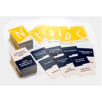Deal 5 letters to each player and reveal a theme. All players rush to find words that fit the theme and begin with one of their letters. They sling their card saying the word and look for more until 3 words are found. Then a new theme is revealed. The first to put down their 5 letters wins the round!