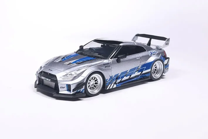 Solido 1/43 Nissan GT-R (R35) Liberty Walk Silhouette Silver And Blue Stripes 2020 Diecast Model Car