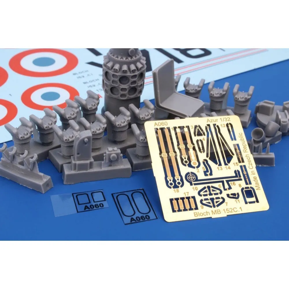The Bloch MB 152C.1 was one of four pivotal fighter aircraft types the Armée de L´Air (or French Air Force) used in the defence of France in 1940. Alongside the Morane Saulnier MS 406, Dewoitine D.520 and ex-US Curtiss H 75, they tried, although in vain, to stop the invading German Luftwaffe. As the development of this machine was not an easy one and the production was rather slow, the production machines failed to reach the operational units in large numbers before the war broke out on September 1, 1939. In fact, only one unit, the Groupe de Chasse GC I/I had them on strenght. Later, during the Battle of France, the Bloch MB 152 were already in use with the following units - GC II/I, GC II/6, GC II/9, GC II/8, GC II/10, GC III/10, GC I/8, GC III/9 and also the Polish GC I/145 although this unit was still in training. The MB 152 were also used by many regional defence units which were known as Patrouilles Aériennes de Défense and also naval fighter units had these machines. Initially, the production MB 152C.1 machines were built with 90cm diameter of the cowling air intake, later machines were slightly improved by having the air intake with only 60cm diameter. However, both varieties used to fly together in the units. And it is the earlier type that is subject of our model kit.