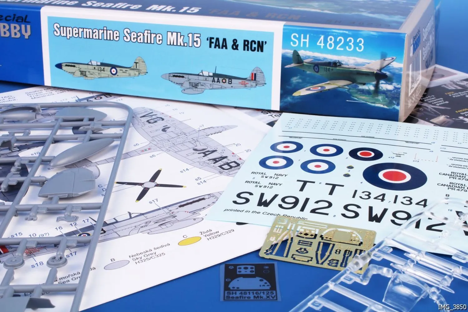 Supermarine Seafire Mk.XV 'FAA & RCN Service' The Seafire Mk.15 of the immediate post war period was the first ever Seafire powered by the Griffon to see the regular service. Besides the FAA, Mk.15 Seafires also flew with the Royal Canadian Navy. Our model contains also etches and offers two schemes, one as with the British Fleet Air Arm while the other option portrays a machine from Canada
