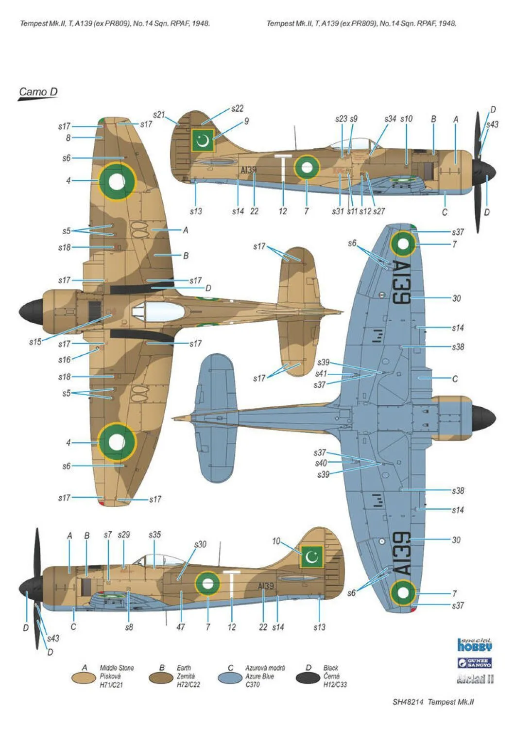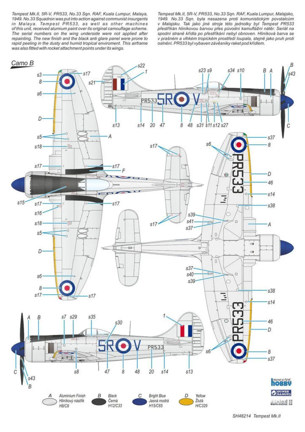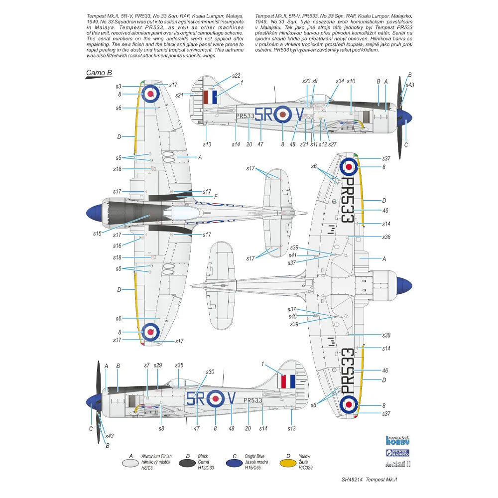 The Tempest Mk.II was the last radial engine fighter aeroplane to have been introduced to service with the RAF. The type had been developed for the planned attack against Japan in the closing stages of the war. But using the atomic bombs by the Americans meant an end to those plans and the Tempest Mk.II was deployed in a couple of post-war era conflicts instead. Bearing RAF colours, it fought the China-backed Malayan communist insurgents in the 1950s. They also fought in the Indo-Pakistani wars.