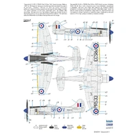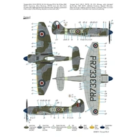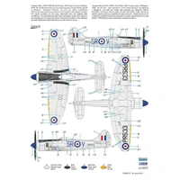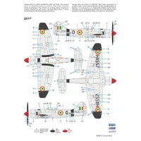Our model of the Tempest Mk.II has been prepared in cooperation with Eduard. It contains eight styrene sprues including two clear parts sprues. The kit is topped up with a handful of resin items – resin undercarriage wheels, a partial replica of the engine with the covering panels, plus the necessary photo etches and painting masks. The decal sheet offers markings for five schemes – three as flown with the RAF, two of which are camouflaged and one in aluminium overall, then we have a Pakistani camouflaged machine and an Indian one in aluminium lacquer finish.