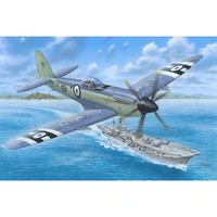 Supermarine Seafire FR MK.47 'The Last Royal Navy Propeller Fighter' 1/72 The final Spitfire versions, i.e. the Mk.21, 22 and 24, sometimes also called the second generation Spitfires, had corresponding navalized counterparts in the Seafire Mk.45, 46 or 47 versions. The Mk.47 Seafire was most similar to the Spitfire 24 type, its airframe was considerably modified though. The arresting hook was a necessity of course, in this case of the sting shaped variety at the very end of the aircraft. The Y type wing could be folded to not the limit this Seafire's service aboard the Navy's latest carriers. The propeller had six blades and was counter-rotating. The South Marston production plant gave in total 99 examples of this very last Seafire version which eventually went to No.800 Sqn on the HMS Triumph, No.804 Sqn detached on the HMS Ocean, and also to some FAA training squadrons or RNVR squadrons. Their post-war service was uneventful and the machines were discharged in the mid fifties. The only exception was the 800 Sqn Seafires that were deployed against communist insurgents in Malaya in 1949, flying off the deck of the HMS Triumph. And a year later, the same unit took part in the initial stages of the Korea War. From 3 July to 20 September 1950, the unit accumulated 245 offensive fighter missions and 155 ground atack sorties over the Korea Peninsula. Our model kitset covers two Seafire Mk.47 options that were operated in Korea in 1950. One of the airfames became 'famous' for its rather spectacular looking crash in the waters off Malta in the Mediterranean, the other one was flown from a UK base. The kit also contais a fret of photo etches and a new sprue with alternative bomb and rocket missile armament parts.