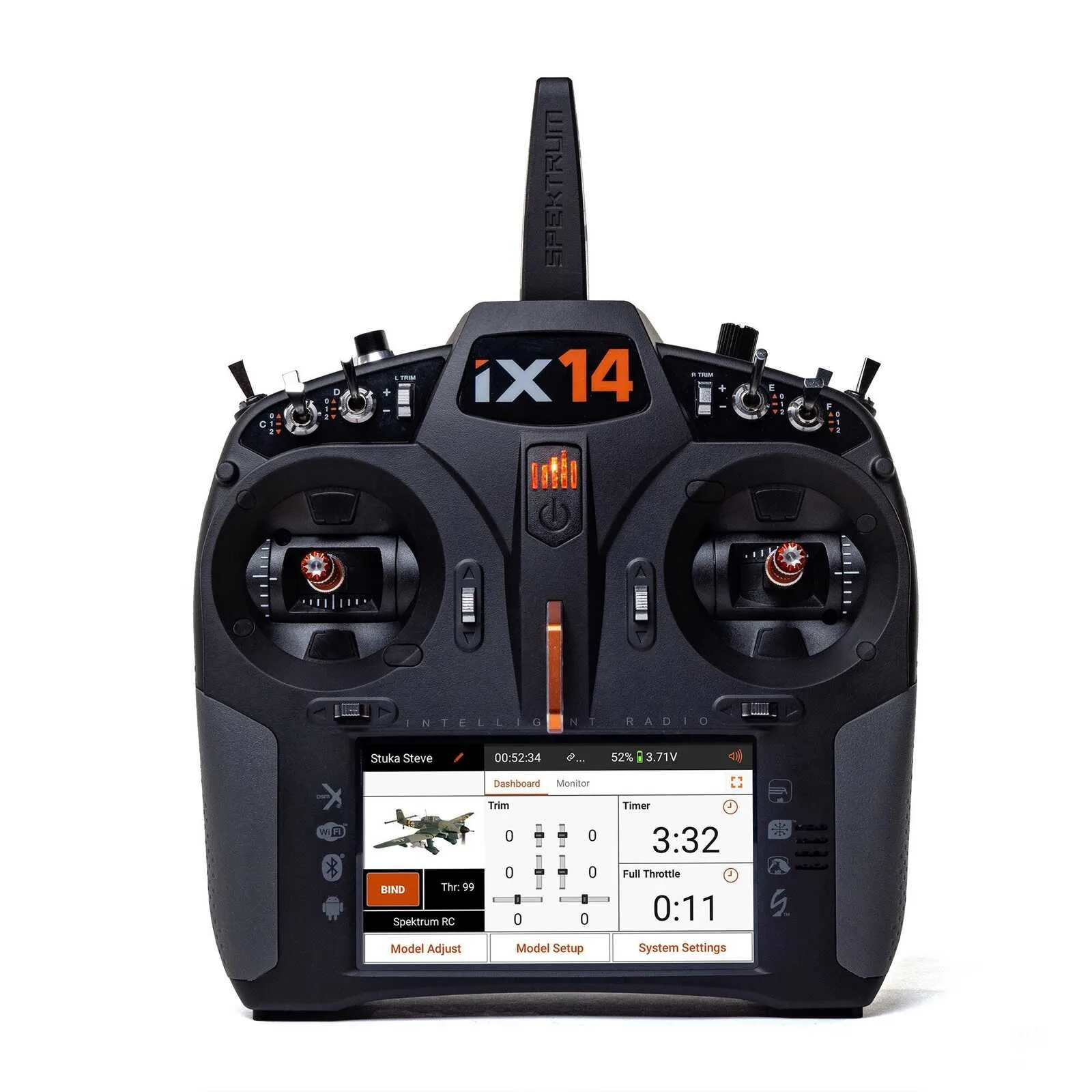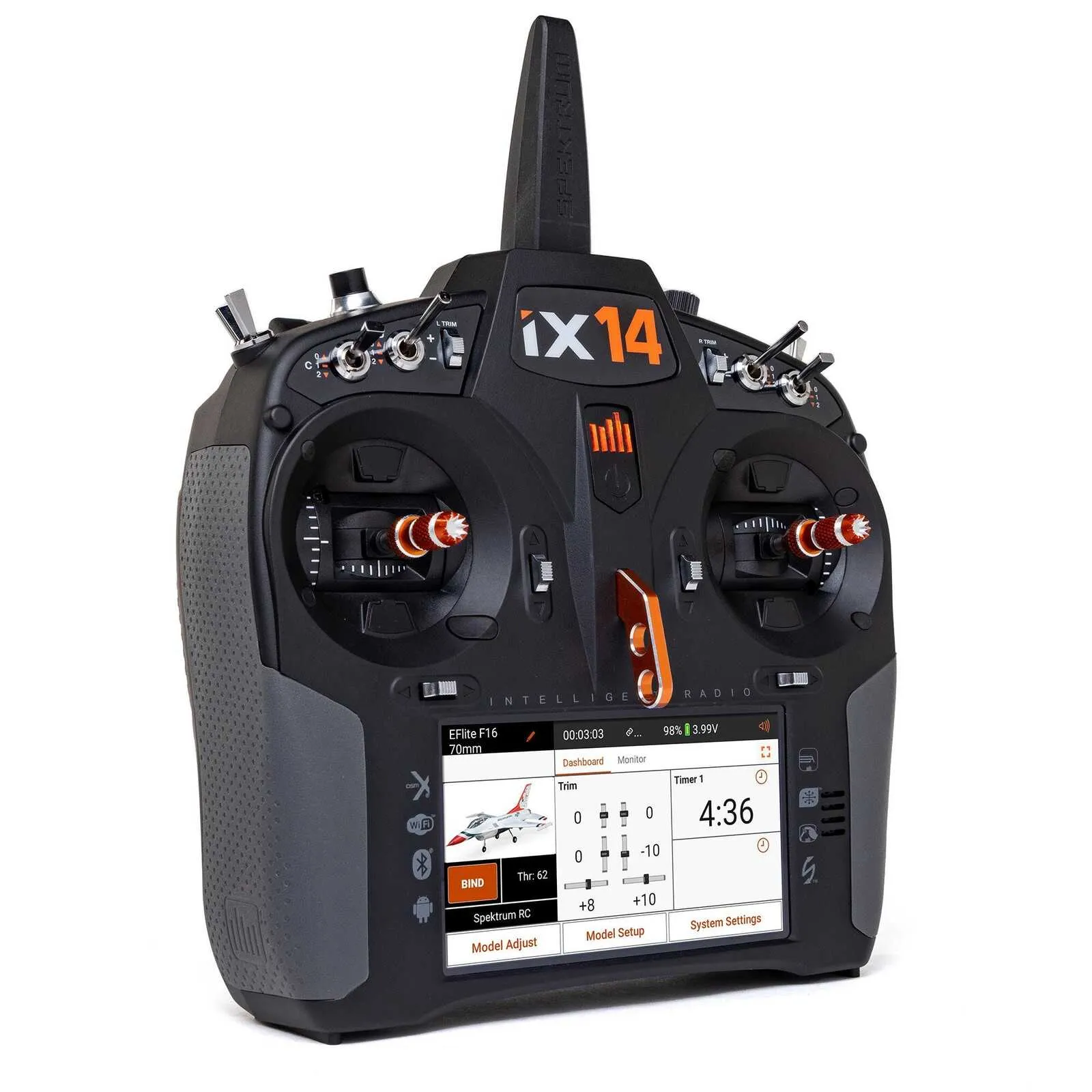 The latest in the Spektrum™ iX series of intelligent transmitters, the 14-channel iX14 offers a powerful array of features for mid- to advanced-level pilots who require advanced programmability and the capabilities to fly high-performance RC aircraft.