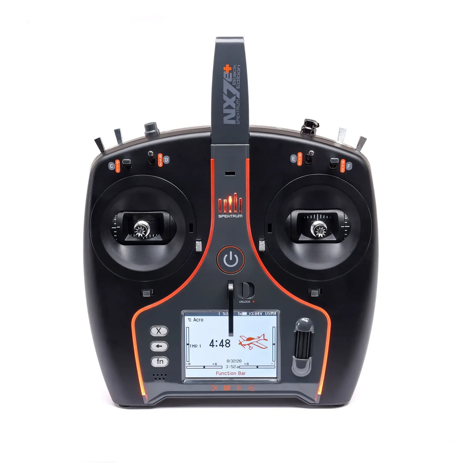 - Spektrum NX7e+ Black Edition 14-Channel 2.4GHz DSMX Transmitter, with