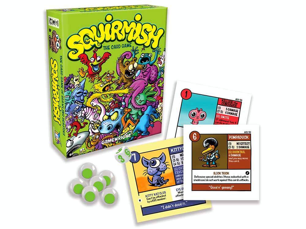 Enter The Squirmish, a ridiculous rumble where creatures clash and only the strangest survive! Draft an odd-squad of warriors with names like Kittyclops, Pompaduck, and Killgor the Conqueror. Then position them into the melee and roll to attack. Each of seventy scrappers has its own preposterous powers, so you'll need strategy - and a bit of luck - to survive! Knock out the competition and become the beastie boss!