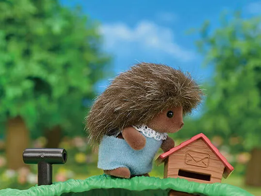 Come and join hedgehog baby Bilberry Bramble as he shows us around his secret woodland den! Bilberry Bramble loves playing outdoors with his friends, and his secret hideout is a fantastic place to meet up and play. There’s a miniature wood-burning stove with real chimney, a rooftop letter box for secret messages, and even a built in sofa. Enter the hideout via the slide, or the door, you choose! The little table fits perfectly inside meaning the friends can all sit down together. And if anyone needs a little nap, there’s even a sleeping bag pod to snuggle down in and get some rest. Set includes hedgehog baby Bilberry Bramble; other figures not included.