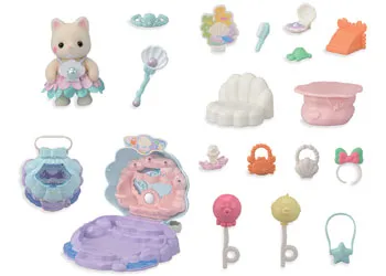 Why Customers Will Love It Includes Silk Cat Baby Gilly in a special mermaid princess outfit Shell-shaped shop transforms into a portable carry bag for easy storage Accessories can be displayed in the shop or worn by the baby Encourages creative storytelling through imaginative ocean play Combines perfectly with the Baby Mermaid Castle and other Sylvanian Families sets Why Retailers Should Stock It A unique and visually appealing addition to the Sylvanian Families collection Appeals to fans of fantasy and underwater-themed playsets Combines figure play, accessories, and storage in one compact design Ideal for gifting and promoting alongside other Sylvanian Families baby products Encourages collection expansion and repeat purchases Explore an underwater world of imagination with the Sylvanian Families Baby Mermaid Shop—where every sparkle tells a story, and every seashell holds a little magic.
