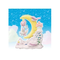 A set containing a moon float, steam train, baby skyship and the Latte Cat cradled baby. Connect the steam train and moon float and have a parade! The steam train bobs up and down as it moves. The moon sways, and the skyship where cradled baby figures can sit sways with it! The skyship can be detached from the moon and played with separately. The Latte Cat cradled baby is wearing an outfit with a shooting star motif to match this set. Lots of baby and cradled baby figures can sit in the moon float and steam train.