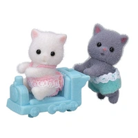 Sylvanian Families - Persian Cat Twins Meet Leah and Bellamy from the Sylvanian Families Persian Cat Twins—two sweet and curious kittens who bring double the charm to playtime in Sylvania. Their gentle personalities and adorable expressions make them a delightful addition to any Sylvanian Families collection. Leah Persian loves tracing the grooves and shapes on buildings and furniture with her hands, always exploring textures with fascination. Her twin brother Bellamy Persian adores rides and spends more time on the ride-on toy than anyone else, laughing as he races through the playroom. Together, these twins fill every day with laughter, discovery, and imagination. The figures feature movable heads and are dressed in removable fabric clothing made from soft velveteen for a lifelike feel. Combine them with the Persian Cat Family (sold separately) and other Sylvanian Families nursery or playground sets for even more creative stories. Why Customers Will Love It Includes twin figures Leah and Bellamy Persian Detailed design with removable fabric outfits and movable heads Encourages imaginative, nurturing play and sibling-themed storytelling Combines perfectly with the Persian Cat Family and nursery playsets Adds personality and play value to any Sylvanian Families collection Why Retailers Should Stock It Part of the highly popular Persian Cat range in the Sylvanian Families collection Appeals to collectors and new fans with its charming twin characters Ideal for entry-level purchases, gifting, or collection expansion Encourages cross-selling with family, baby, and nursery products Recognised for Sylvanian Families’ timeless quality and storytelling appeal Add a touch of sweetness and sibling fun to your display with the Sylvanian Families Persian Cat Twins—Leah and Bellamy, the perfect pair for heart-warming adventures in Sylvania.