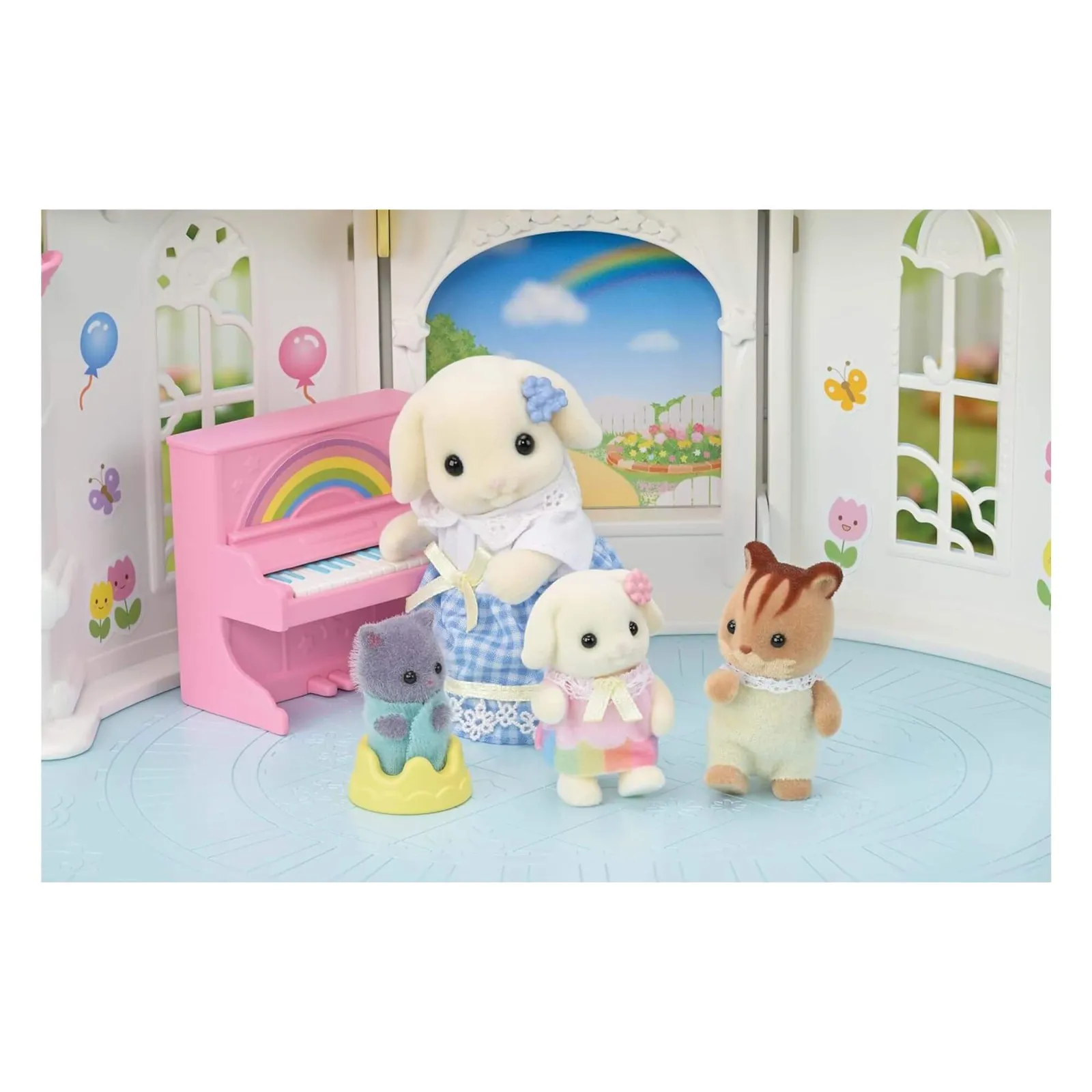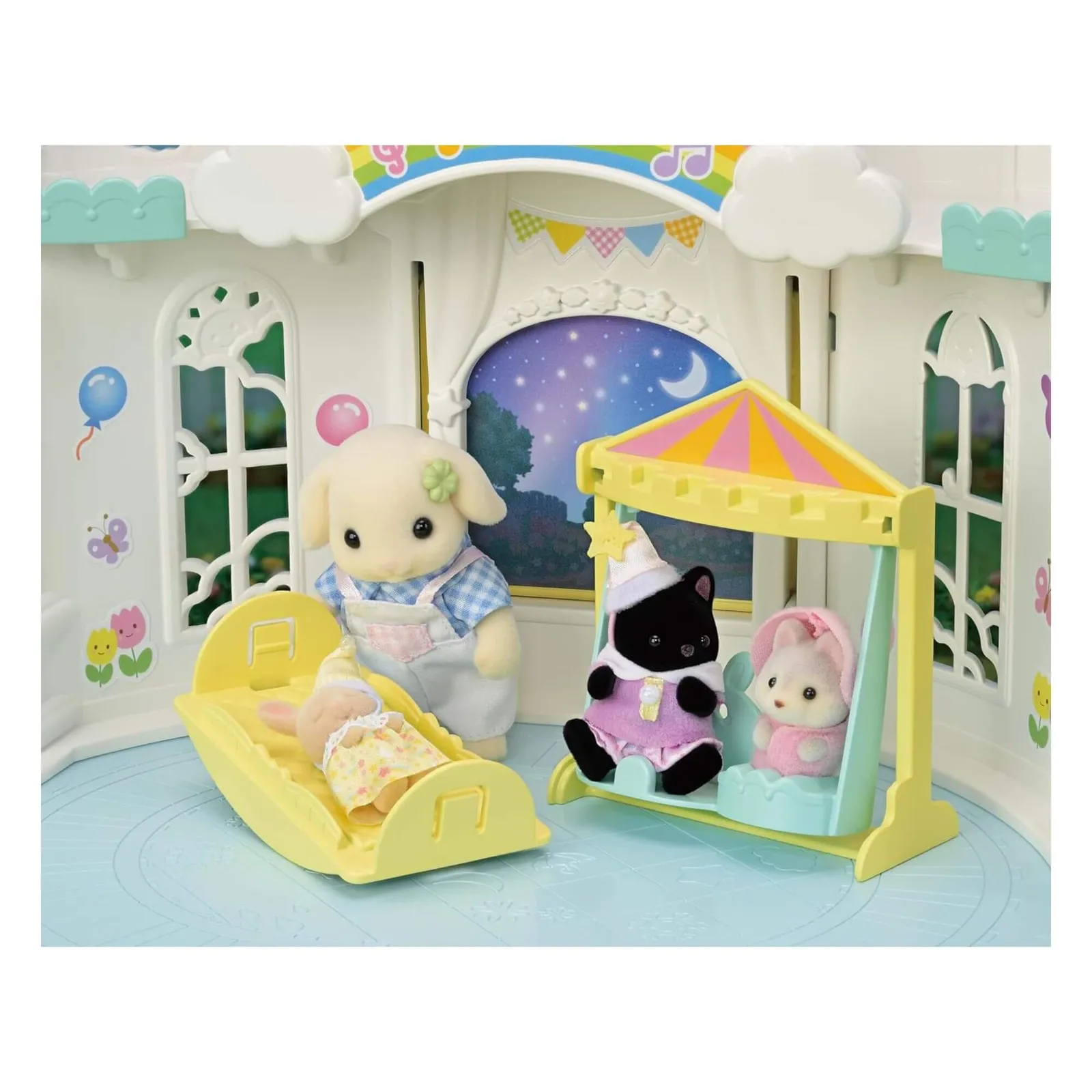*The Sunny Castle Nursery set contains a nursery with changeable weather and the Flora Rabbit Baby.