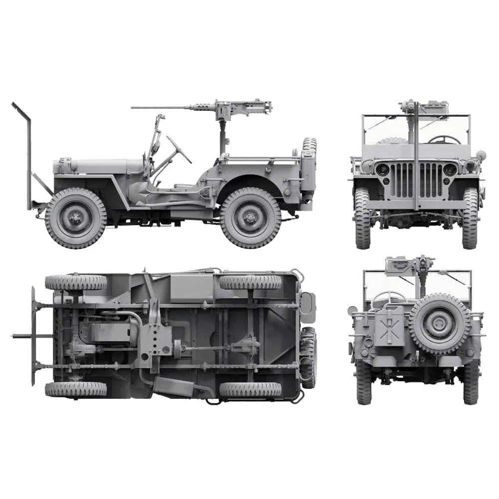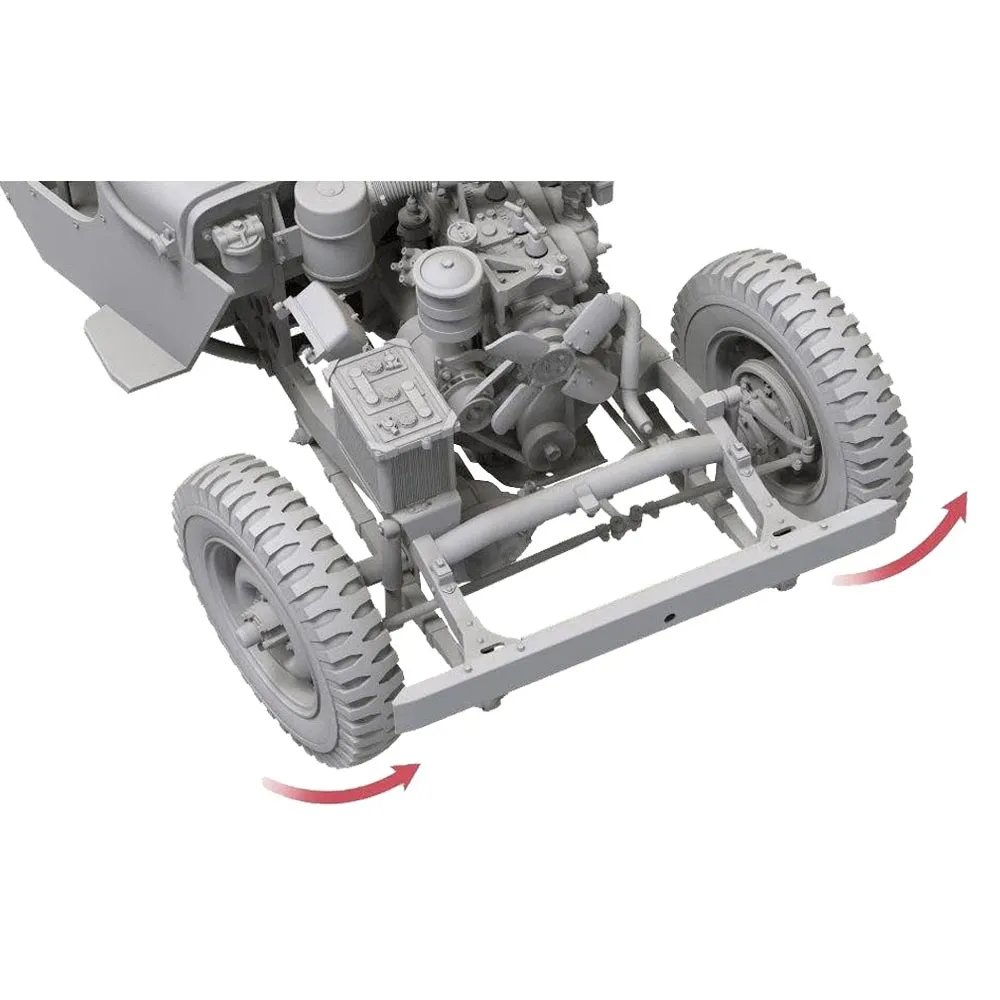 Iconic WWII light utility army vehicle, official designation Truck, ¼-ton, 4x4, command reconnaissance. Workable front wheel steering Detailed engine Wire cutter Choice of 4 markings Figure included 1:16 scale model kit from Takom, requires paint and glue.