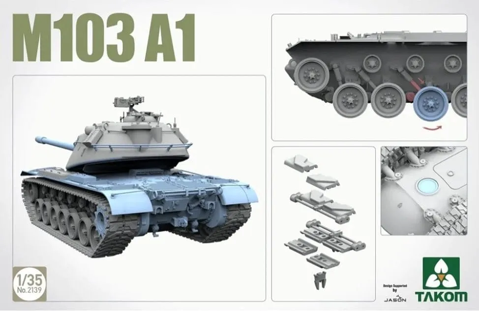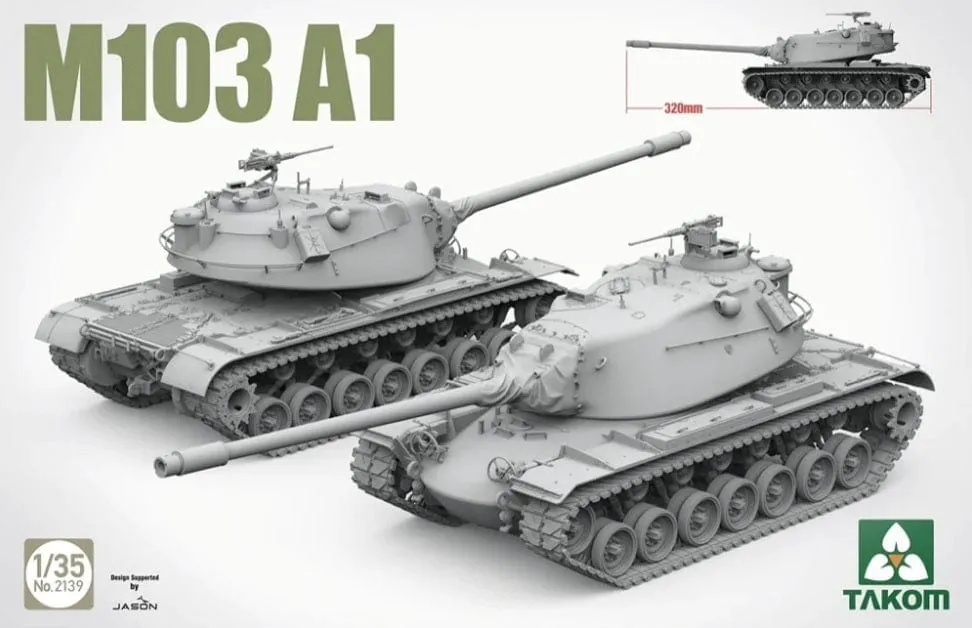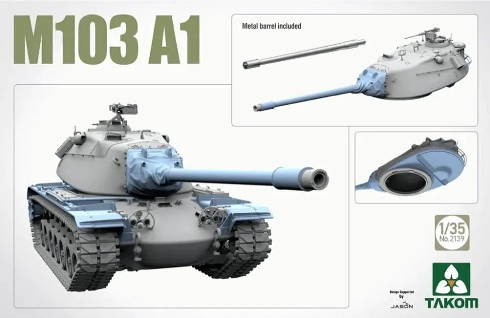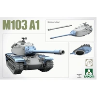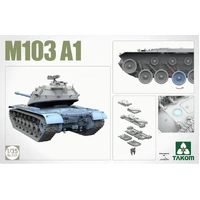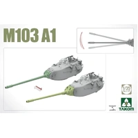 SKU: TK2139 | Brand: Takom | Product: Takom 1/35 M103 A1 Plastic Model Kit This 1/35 scale Takom plastic model kit reproduces the M103 A1 heavy tank with detailed components throughout. Assembly involves precision construction of the chassis, turret, and armament systems. Scale: 1/35. Material: Plastic. The completed model captures the vehicle's imposing profile and structural characteristics.