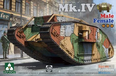 Takom 1/35 WWI Heavy Battle Tank MkIV 2 in 1 (New Decal & Workable Tracks) Plastic Model Kit [2076]