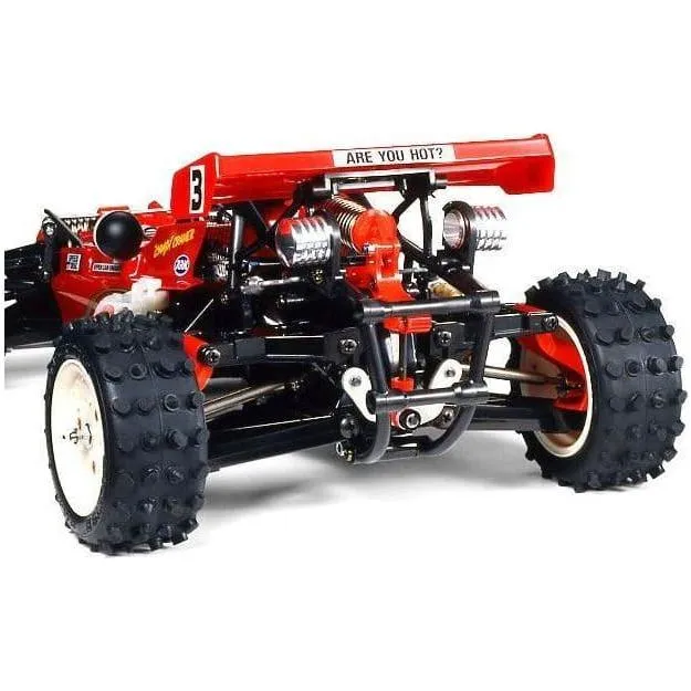 Take this updated Hotshot out for a spin and compare it to today's R/C buggies to experience how far this hobby has developed! Specifications Length: 390mm Width: 235mm Height: 150mm Weight: 1270g Tread: (Front/Rear) 194mm Tire Width/Diameter: (Front) 28/82mm, (Rear) 34/82mm Frame: ABS Resin Monocoque Drivetrain: Shaft-driven 4WD Diff.