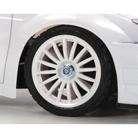 • White 16-spoke wheels are paired with tread pattern racing radial tires.