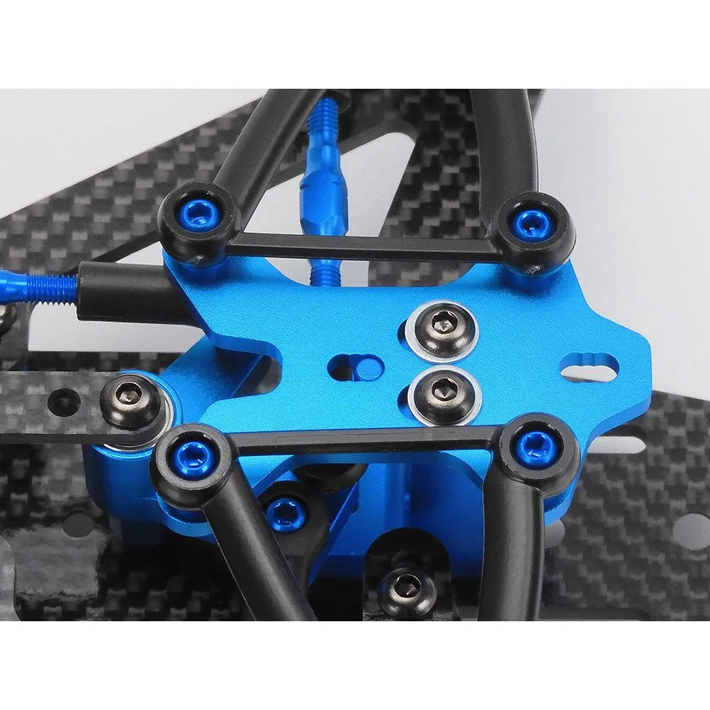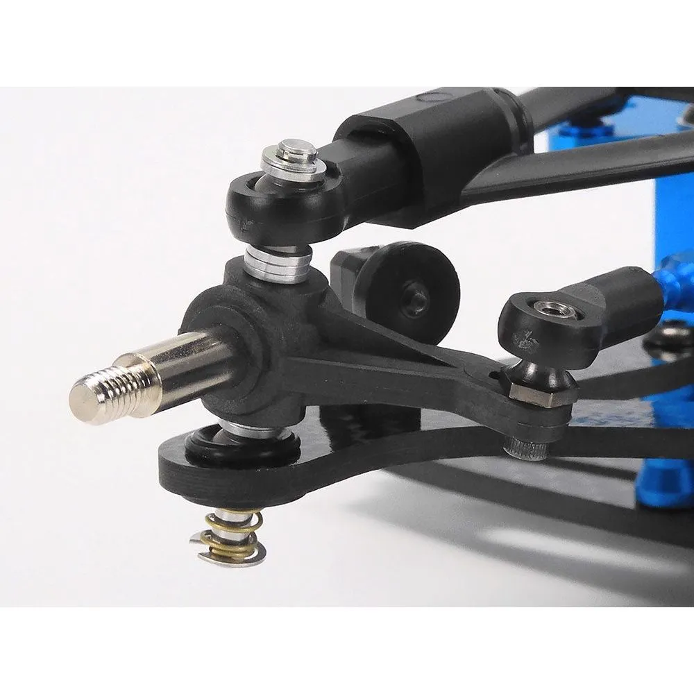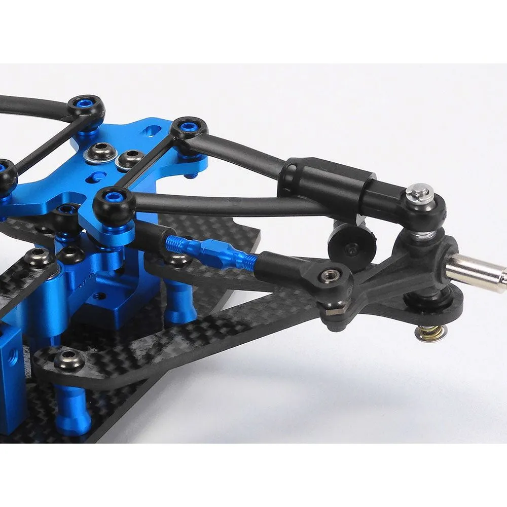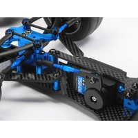 Improved front suspension Plastic upper triangles and carbon fiber lower triangles (2.5mm) with track width adjustments.