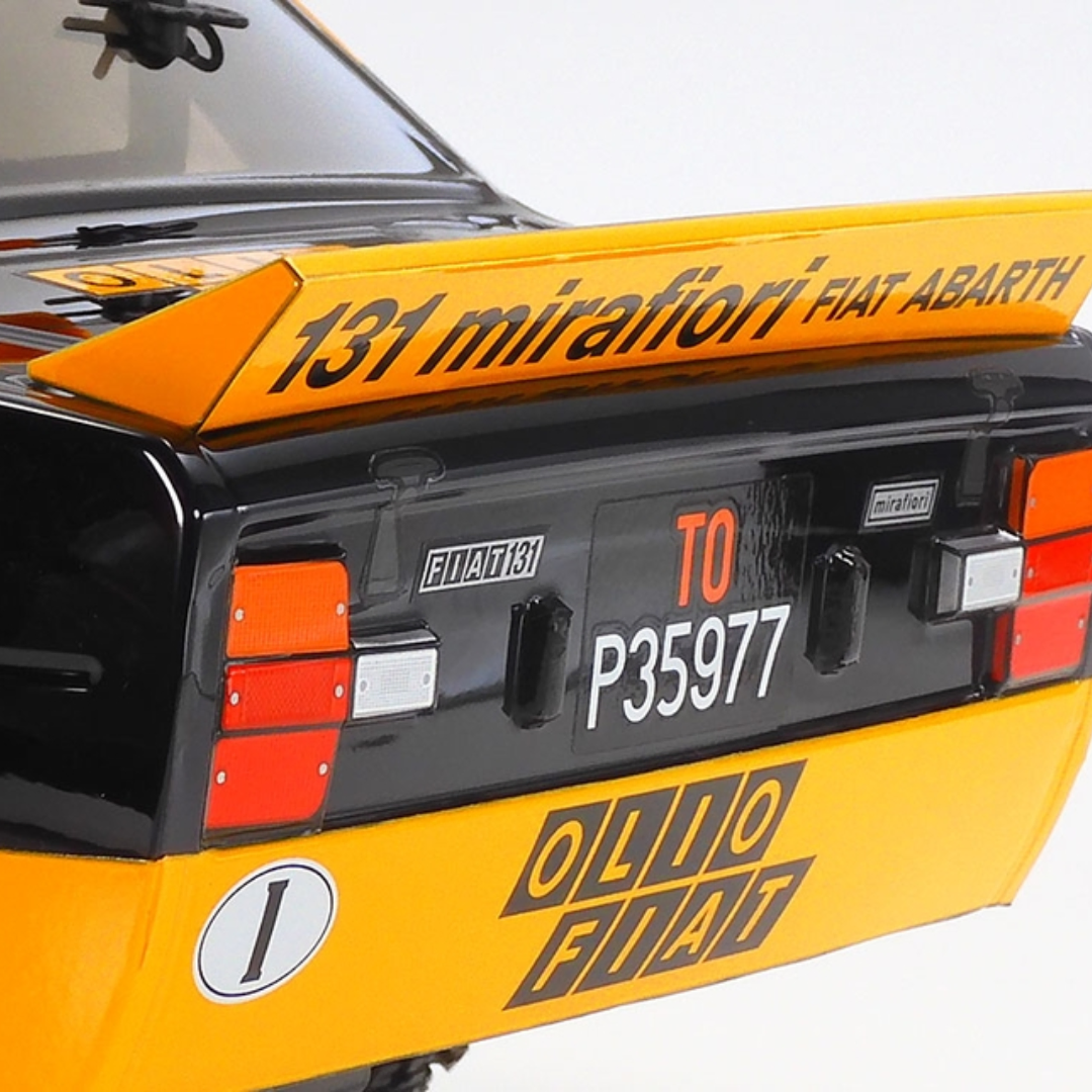 This R/C model assembly kit recreates the classic FIAT 131 Abarth Rally Olio Fiat on the easy to assemble and drive MF-01X rally chassis platform. The Fiat 131 Abarth Rally developed from the Fiat 131 Mirafiori which made its debut in 1976 and became champion in global rally races in 1977 and 1978. The kit depicts the Olio Fiats livery.