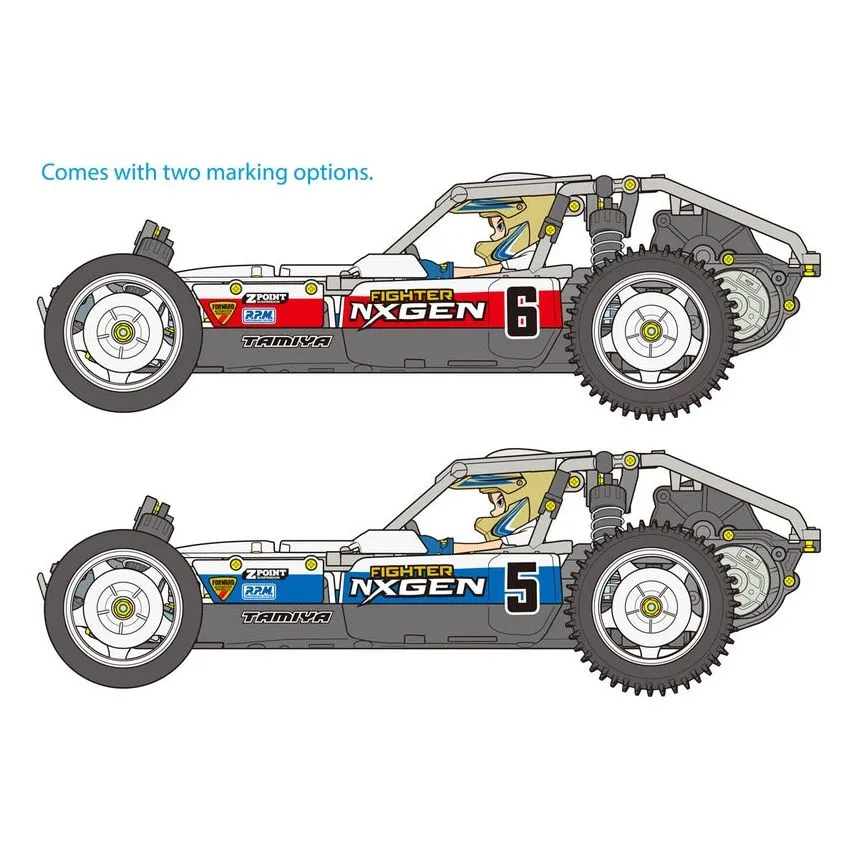 Discover the Tamiya RC Fighter NXGEN 1/10 ( Ref 58741 ), a radio-controlled buggy inspired by the famous American single-seater racing cars.