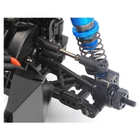 The XV-02 RS chassis is an on-road variant of the rally XV-02 platform. The kit is mainly oriented for on-road, and features updates such as dedicated 3.5mm thick carbon fiber damper stays, aluminum-cylinder oil dampers employing shaft length suited for on-road performance, and carbon fiber-reinforced rigid lower chassis.