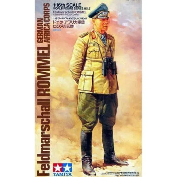 A CORPS) This is a 1/16 scale plastic figure assembly kit depicting the "Desert Fox" - German WWII commander Feldmarschall Rommel. ★The figure is depicted in the uniform worn while Rommel was active in fighting in North Africa, with separate parts for collar and medals. ★Goggles are captured realistically using clear parts.