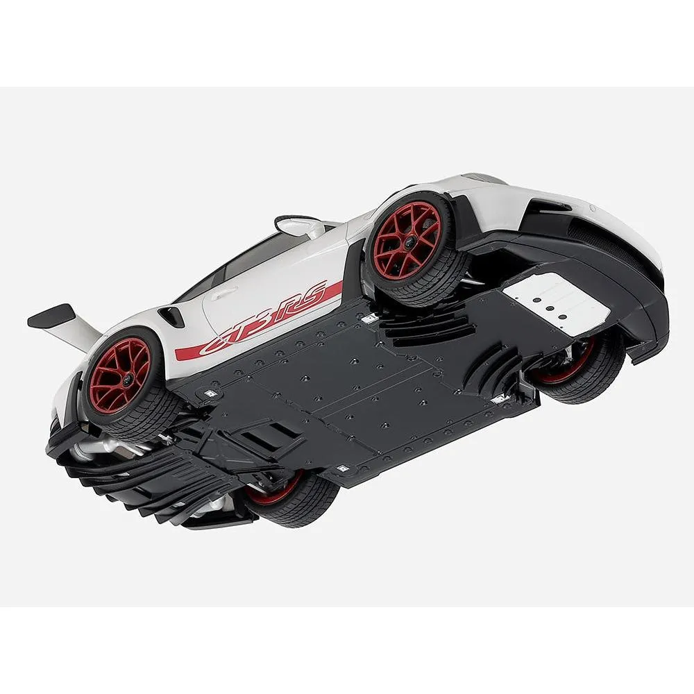 This model assembly kit recreates the iconic Porsche 911 GT3 RS (992) introduced in 2022. It is the first new 911 GT3 kit since the release of item 24229 Porsche 911 GT3 in 2001. The GT3 RS (992) was added to the legendary, ever-evolving Porsche 911 series in 2022. It’s a high-performance road car with a strongly circuit-oriented design. The hood and fenders have vents, and wheel arches and roof are equipped with fins. Its massive rear wing’s Drag Reduction System (DRS) contributes to refined aerodynamics, and the liberal use of carbon fiber reinforced plastic (CFRP) ensures a lightweight body. The rear flat-six-cylinder engine provides 525 horsepower!