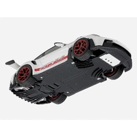 - The model can be assembled as the left hand drive (European Spec.) with recreations of sporty “Weissach package” wheel shape, carbon fibre sections (hood, roof, rear wing and side mirrors), roll cage, door straps, shift paddles and headrests' logos.