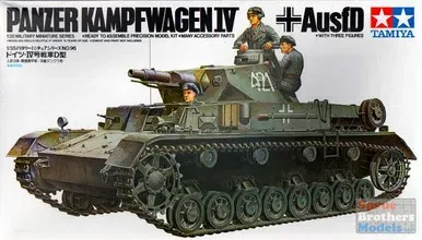 This is a 1/35 scale plastic model assembly kit depicting the Ausf.D variant of the German WWII tank Pz.Kpfw.IV. ★From the short-barrelled 75mm gun to the powerful design, the form of the tank is recreated in style. ★Comes with parts to recreate either early or late production Ausf.D variants. ★Includes three figures depicted in uniform seen during the invasions of Poland and France in the opening years of WWII.