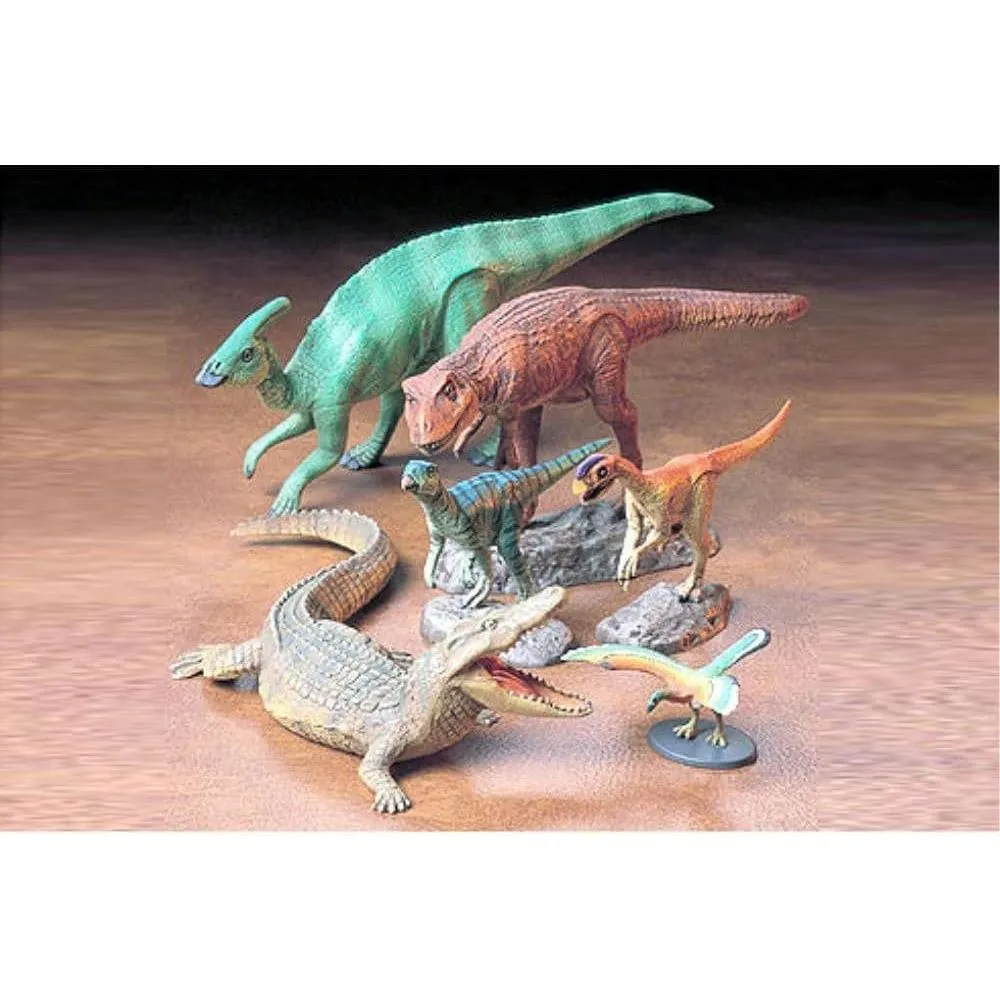 This assembly kit set depicts a variety of smaller dinosaurs such as adolescent Parasaurolophus and Tyrannosaurus as well as Oviraptor and Hypsilophodon. A crocodile as well as an example of an ancestor to today's birds are also included.