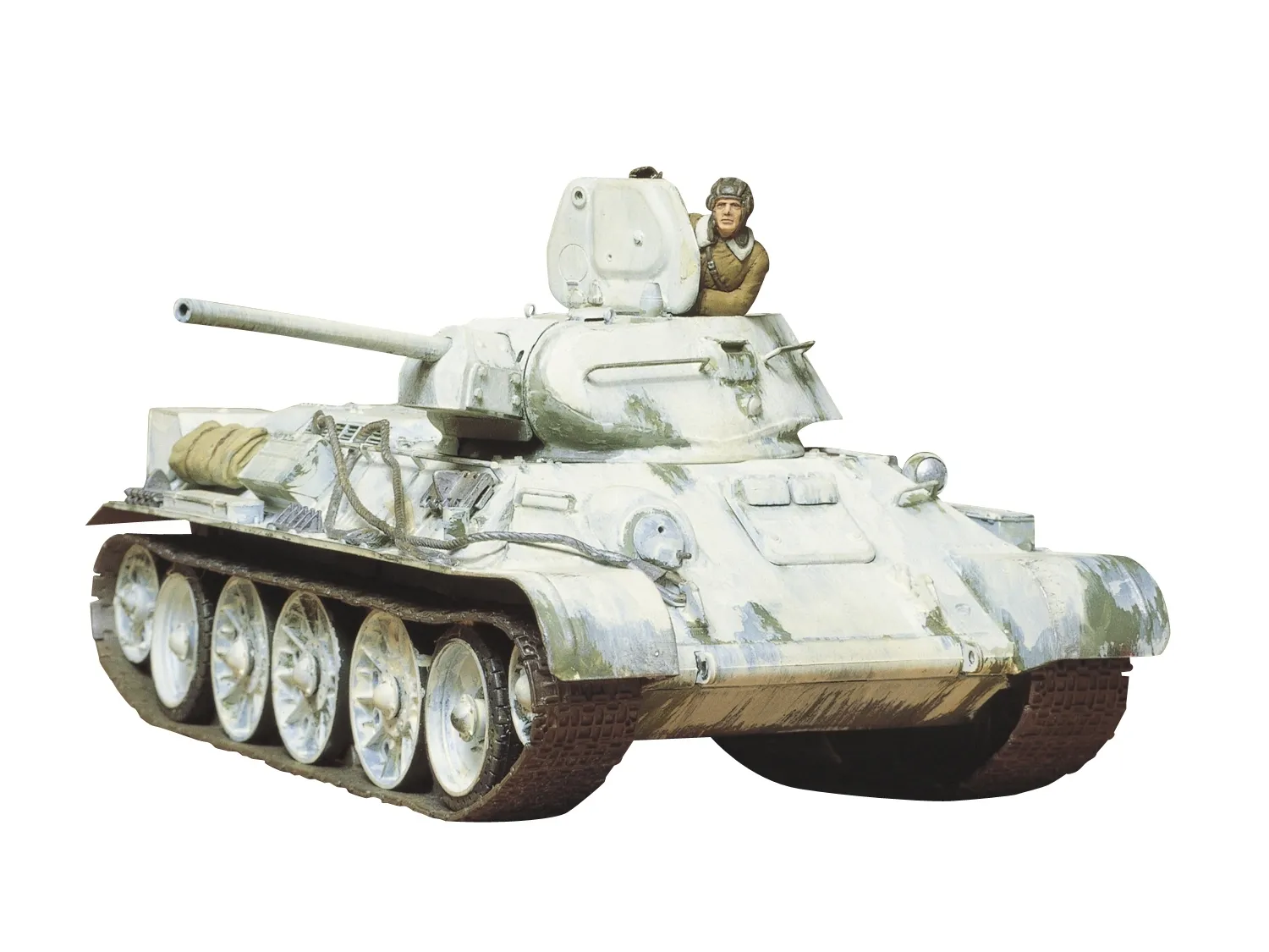 This model kit recreates the 1942 production model of the famous Russian Tank T34/76, which proved to be effective against German tanks during WWII. It was fitted with an L/41.2 76.2mm main gun, a powerful diesel engine, and a large commander's hatch on the turret. Its wide tracks enabled great mobility in snow or muddy terrain. The design would eventually evolve into the T34/85 tank that was itself a symbol of the successful Soviet fight against the Axis powers in WWII.