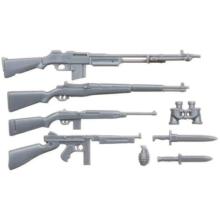 New to this set: Various series of the short-sleeve M41 jacket and leggings had been the staple of the American Army uniform around June 1944 when the Invasion of Normandy occurred, but from summer in that year onward, the new common uniform was developed for paratrooper, armored and mountain divisions, and the M43 field jacket and 2-buckle boot became common. • 1/35 scale plastic figure model assembly kit. • U.S. infantry scouts are accurately captured in uniform typical of the WWII period. • These figures depict the commander looking ahead with M1 Carbine in hand, two soldiers with M1 Garand and BAR, one soldier with the Handie Talkie (Thompson submachine gun on the ground) and a rifleman down on one knee. • Figures are in realistic pose and have lifelike facial expressions that add a further element of authenticity to any model or diorama of the period. (Use with M4A3E8 Sherman "Easy Eight", M10 and M18 Hellcat is recommended.) • Accessories such as fire extinguisher, grenades and binoculars are realistically captured. • Comes with five helmets (two out of the five have camouflage nets). • Decals are included to depict rank insignia on sleeves.