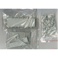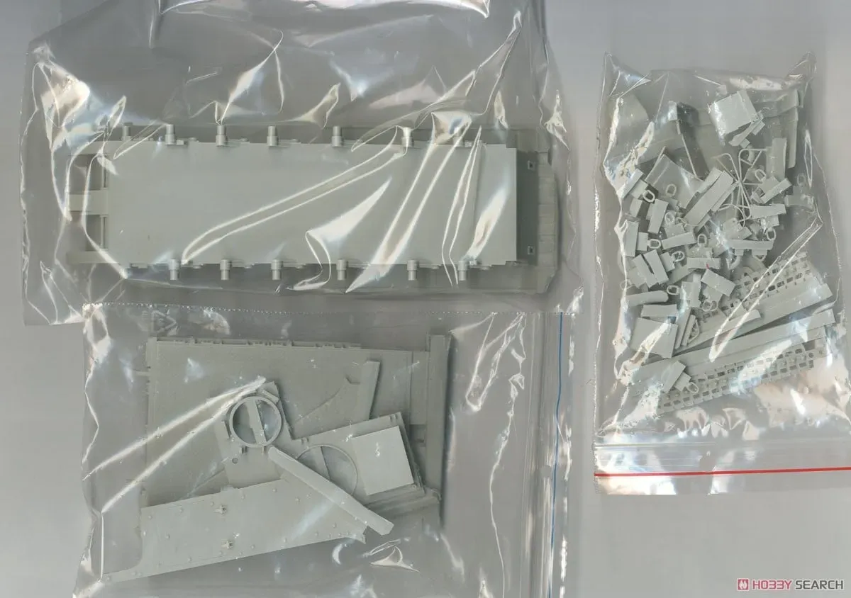 • Olive green plastic parts are attached to sprue trees.