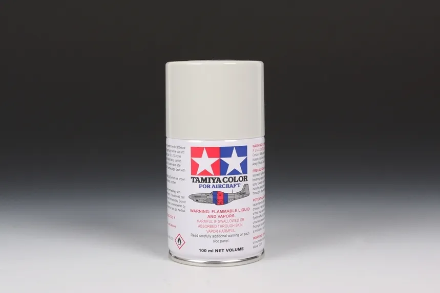 The AS line-up of spray paints are specifically developed to provide the subtle shades necessary for finishing both historical and modern aircraft models. The paint is made up of a synthetic acrylic lacquer that cures in a short period of time. Each can contains 100ml of paint, which is enough to fully cover 2 or 3, 1/48 scale sized plastic aircraft models or one 1/32 model. Tamiya spray paints are not affected by acrylic or enamel paints. They may be applied over a cured spray painted surface.