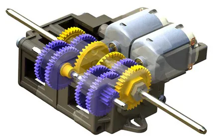 Set Left/Right Ratios Independently This gearboxe features two motors with their own respective output shafts.