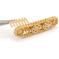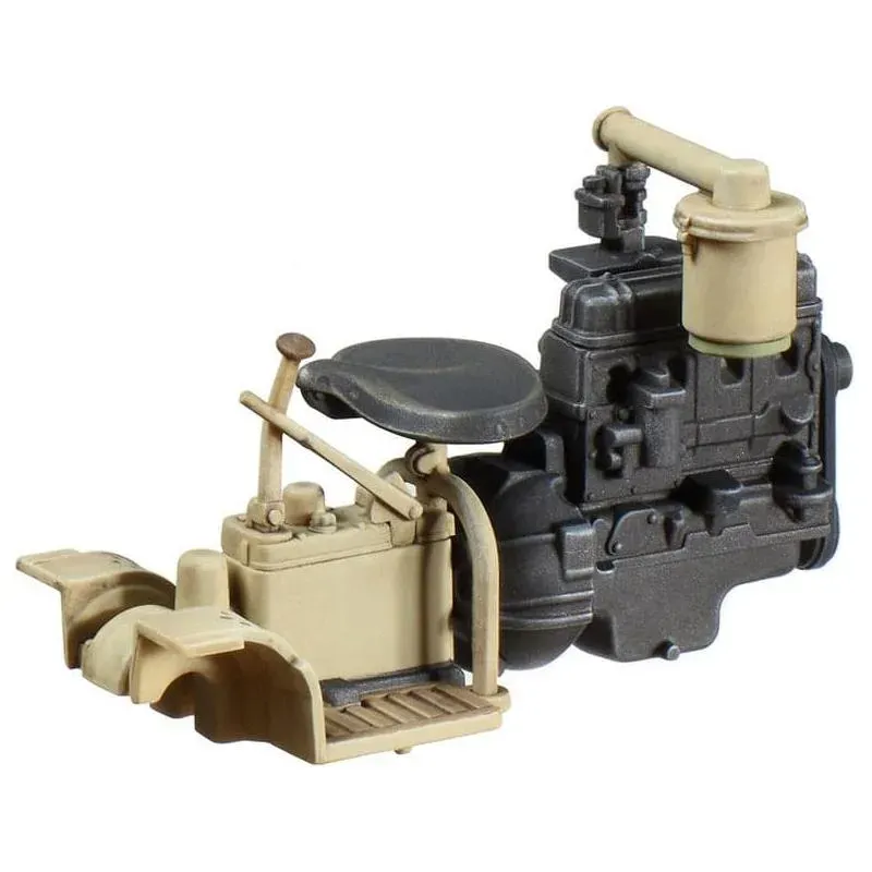 Length: 140mm, width: 30mm. • Features realistic depiction of suspension and the complex wheel positions based on research of the real vehicle. • Assembly type tracks have one-piece straight sections, and the separate pad parts, engine and transmission give a more realistic image. • Engine hatch can be assembled open or closed, and it uses photo-etched parts for grille.