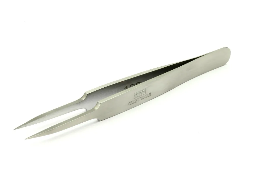 These 115mm straight tweezers directly transmit movements of the fingers right to the extreme tips, ideal for precision modeling tasks.