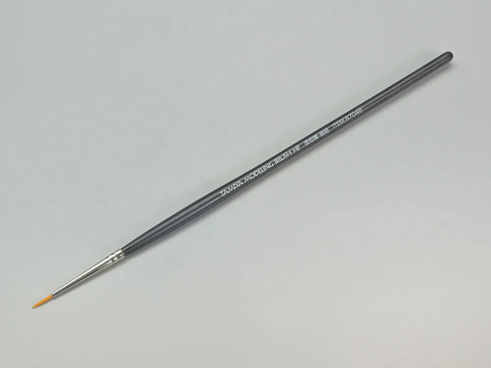 The High Finish (HF) brushes from Tamiya feature specially designed resin bristles for use with plastic model paint. This pointed brush is suitable for painting figures, markings, instrumentation on aircraft models, and other fine details.