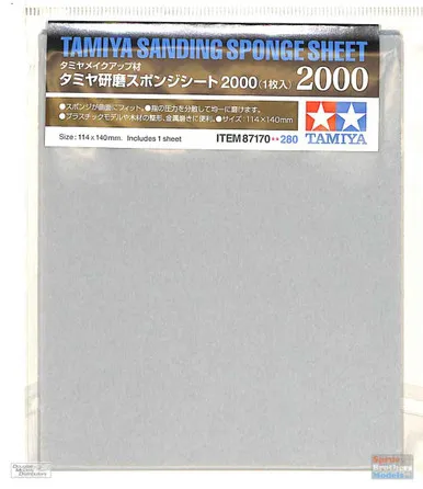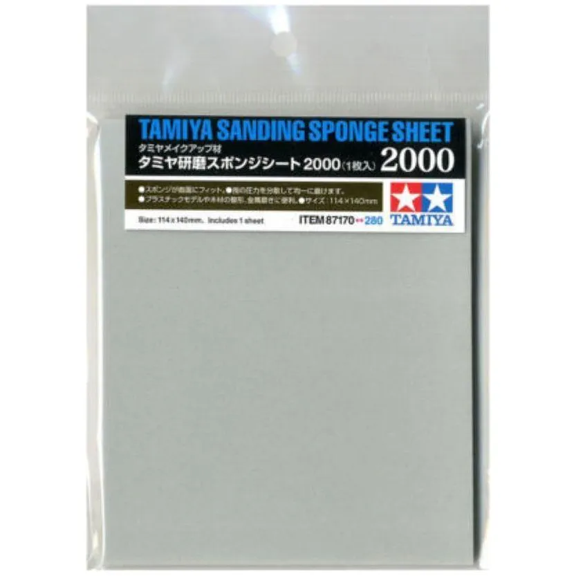 A SANDING SPONGE SHEET 2000 ★This sanding paper features aluminum oxide particles and is backed on 5mm-thick sponge. ★The sponge gives this product excellent flexibility, and makes it extremely useful to anyone working with plastic models, for example when smoothing off cut joints. It can also be used with wood and even metal. ★It can be cut into smaller sizes using a modeler's knife, and is OK to use for wet sanding. ★Dimensions: 114×140mm.