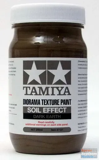Drying time: 4-5 hours. - This water-based paint features a paste-like texture with special resin particles for recreating dirt surfaces. - Paste-like consistency offers excellent concealment qualities and can also be used like putty to fill in gaps. - After applying a thick layer, the surface can be formed before it dries completely. - Thin with water if paint is too thick. - As these items are water-based, they do not have a strong smell and it is possible to clean with water before it sets. - When applying, please use a spatula or an old paintbrush as new brush bristles may be damaged when applying. - It is possible to mix with other Tamiya acrylic paints to achieve different colors. - It is possible to apply washing and dry brush effect on the texture painted surface with enamel paints. - Do not use with airbrushes as it may cause damage.