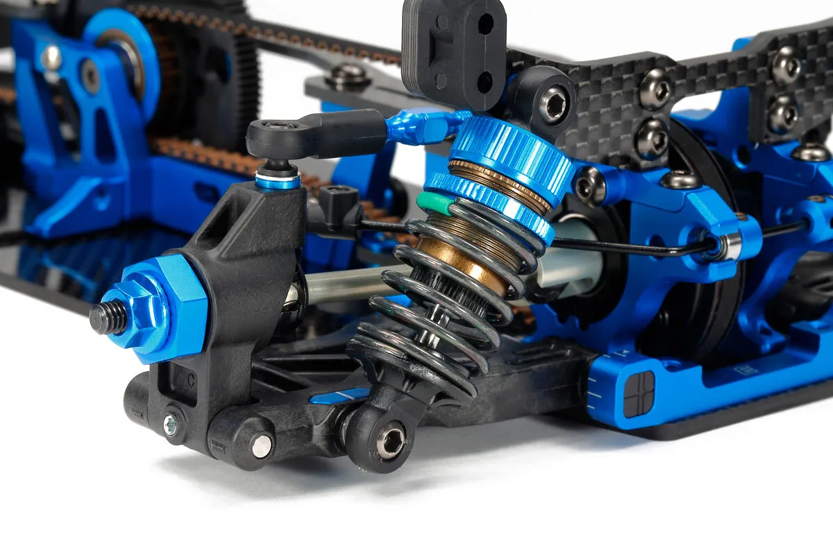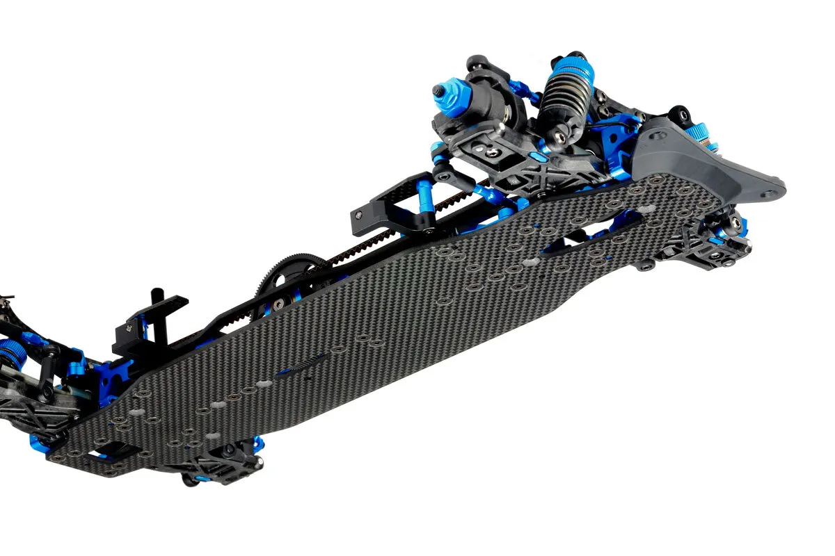 ★This assembly kit creates the latest top-end TRF chassis. ★Chassis flex is highly emphasized, for superlative driveability. ★Different combinations and numbers of upper deck screws allow fine-tuning of setup. ★Spur gear is position ahead of the motor, reducing pitch on the throttle. ★2.25mm carbon fiber and 2mm aluminum lower decks are included. *Body, motor, wheels, tires, R/C equipment, battery pack and charger are sold separately. • Requires: 2-channel radio, steering servo , 7.2-7.4volt battery with a compatible charger , and Tamiya PS paint .