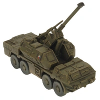 The Czechoslovakian 152mm DANA self-propelled howitzer (also used by the Polish Army) is a unique design that mounts a traversible howitzer turret on an armoured 8x8 truck chassis. The fully automatic loading system of the DANA loads the projectile and then the charge, so the gunner can select either single shot or automatic fire. The breech of the howitzer is designed so the autoloader can load the weapon at all angles of elevation so the gun doesn't have to be repositioned for loading. THIS PRODUCT CONTAINS: 3x resin and metal DANA 152mm SP Howitzers --- These miniatures are supplied unassembled and unpainted